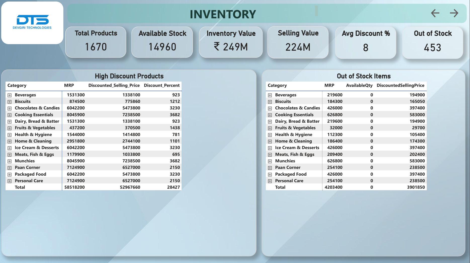 Monitor stock levels, warehouse performance and reorder alerts in real time.